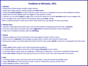 Oliver Lovell Ollie Lovell Feedback Michaela 2015 quizzes whole-class exams peer self